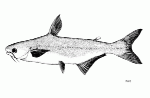 DESCRIPTION. Family: PangasiidaeCommon namesEnglish: basa, royal basaLaos: pa hua muam, pa yang, pba hua muamCambodia (Khmer): keir, trey pra kchauVietnam: cá Basa bocourti, cá ba saDescriptionBody stout and heavy, head broader than long, blue-lack back, blunt snout with broad white band on muzzle; rounded head and blunt rounded snout (http://www.fishbase.org) Picture: FAO |